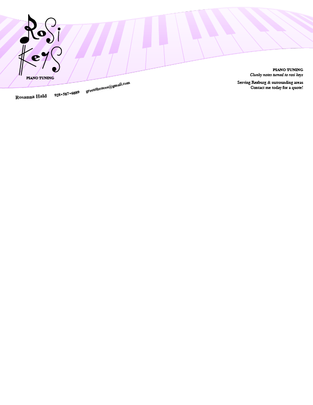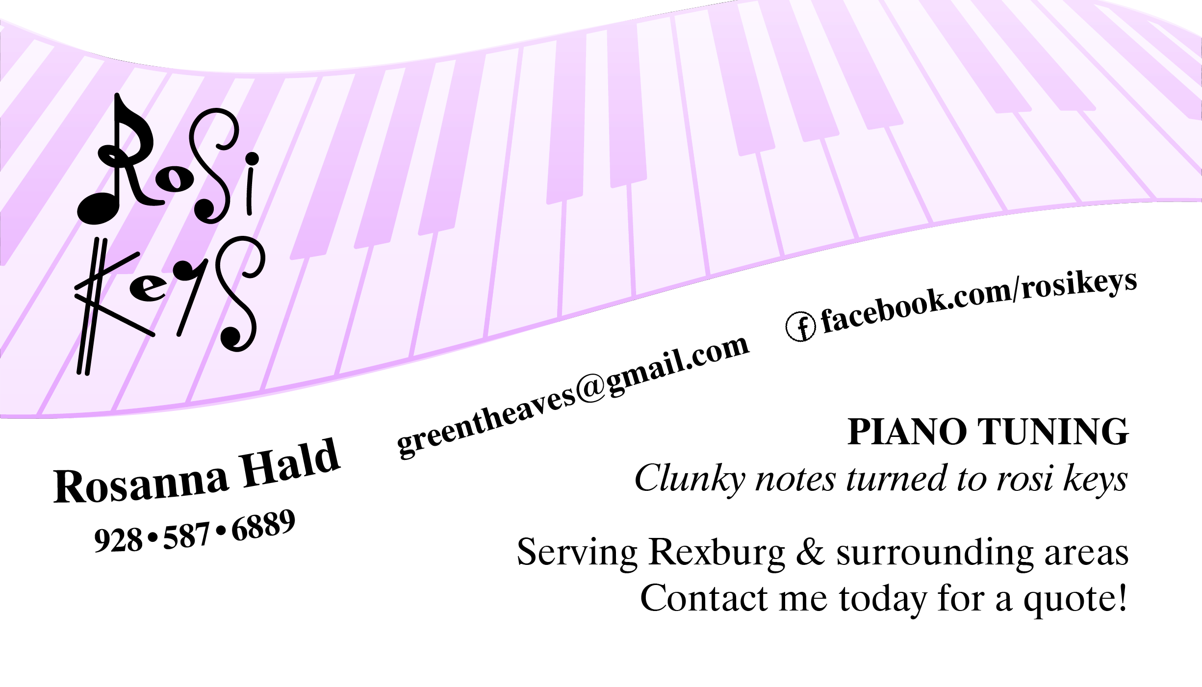Rosi Keys, a small business that focuses on piano tuning. Piano lessons are also available.